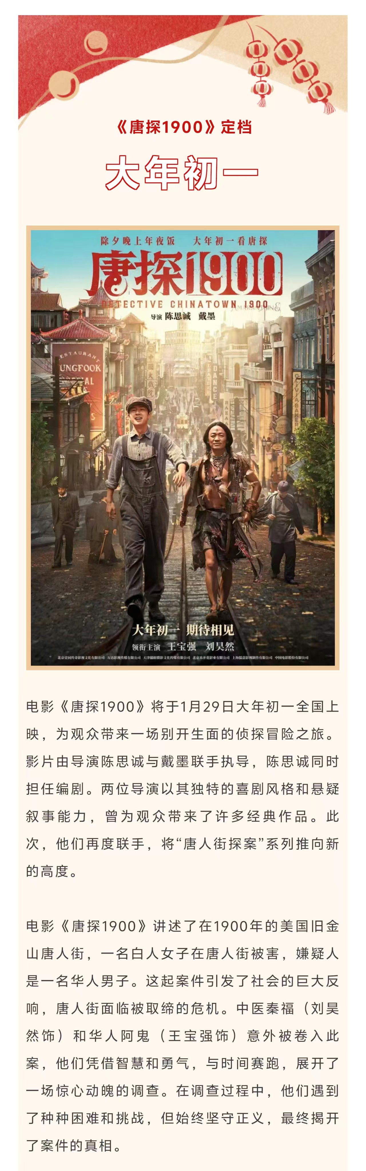 再度讲求!相沿观测笑剧片《唐探1900》春节档上映